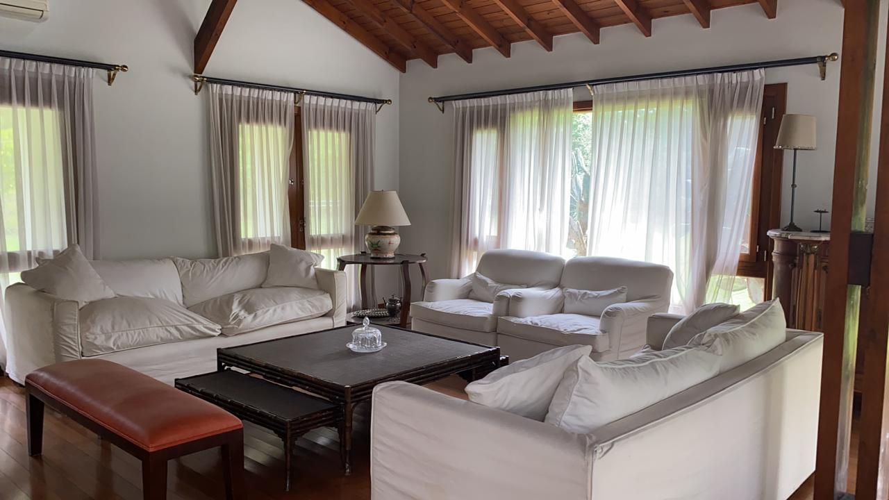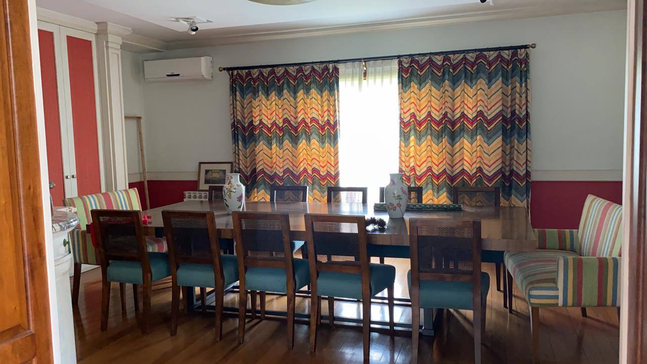 Living con hogar a leña y comedor para 14 personas muy amplio y luminoso. Closet para invitados 6 baños, toilette de recepción, los inodoros y bidets son todos marca Roca, las canillas monocomando también Roca y los depósitos de los baños son con botones FV directos desde el tanque de agua, salvo baños quincho y servicio.